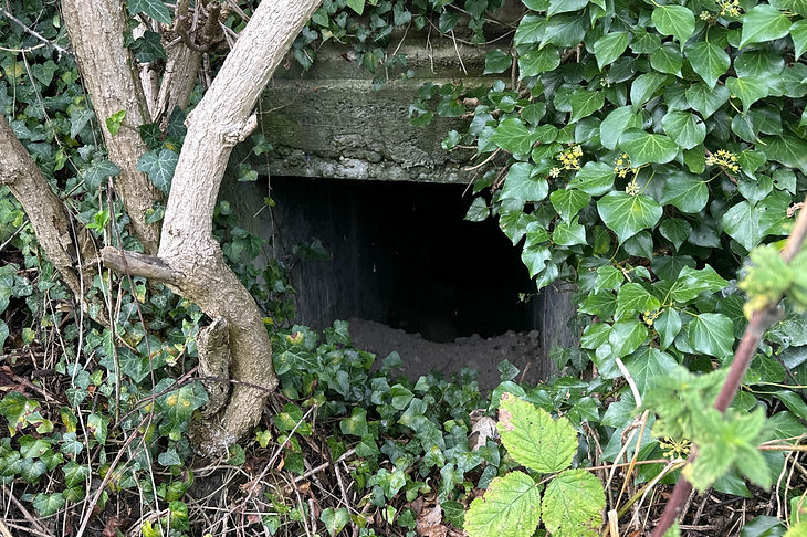 The entrances to the main bunker are filled in but a small gap at the top of the doorway allows you to see several rooms inside, one which is lined with the same tiles found in hospital buildings of the era.