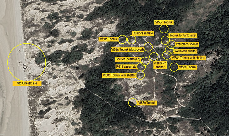 Waldrand stands less than 100m inland of the beachfront complex of Stp Obelisk where there were a series of machine gun Tobruks, a R502 personnel shelter, and three gun positions. One was for a 5cm KwK anti-tank gun inside an open emplacement while a Skoda 4.7cm Fortress gun was protected by a special construction, early design bunker.